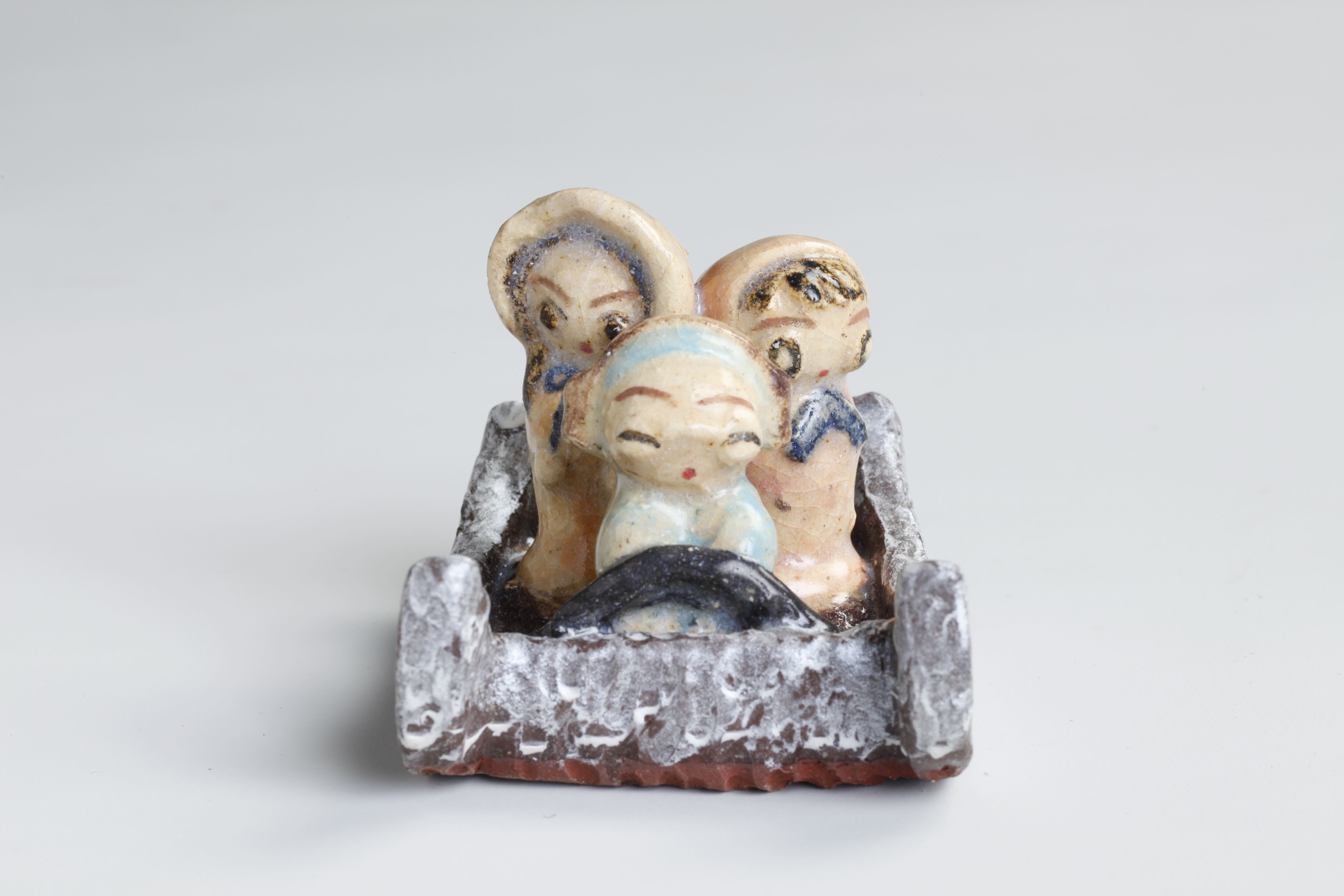 陶芸家・菊池俊治氏とのマグカップに続く、第二弾の作家コラボレーション! 今回は、作家のDOKI MIZUHO氏を迎え、私達をイメージした唯一無二のトーテム作品を3つ製作していただきました。DOKI MIZUHO氏自ら土を練り上げ、手作業で造形した作品は、野焼きによる独特の風合いを醸し出しています。(最後の写真は、5個のミニフィギュア作品を見比べていただくための参考画像です )